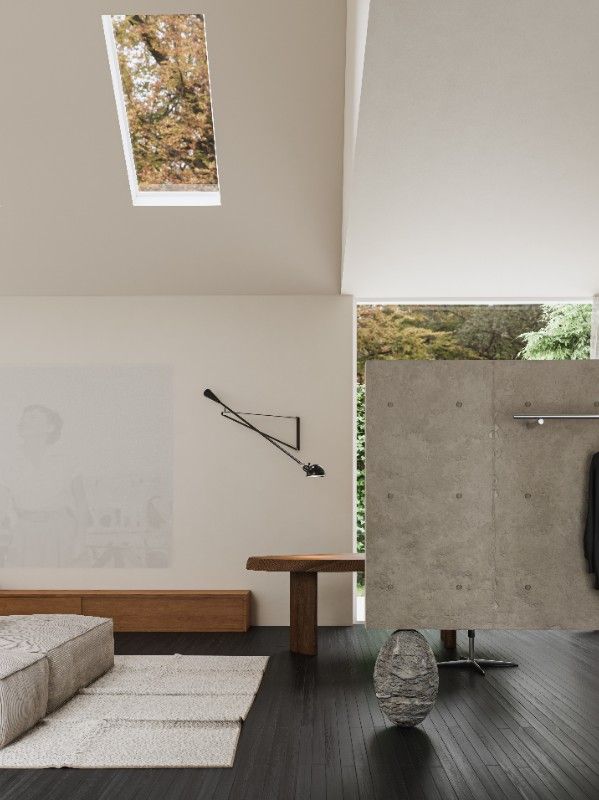 Ruth: 自然光是最好的建筑材料。屋顶的天窗将变幻的云影和四季的绿意直接引入室内,光线随着时间在白色斜墙上缓慢推移,空间因此有了时间的维度。