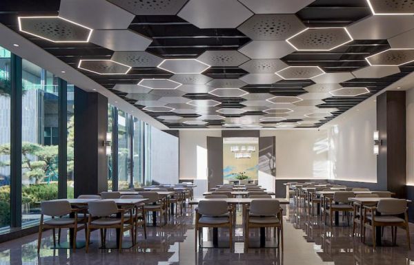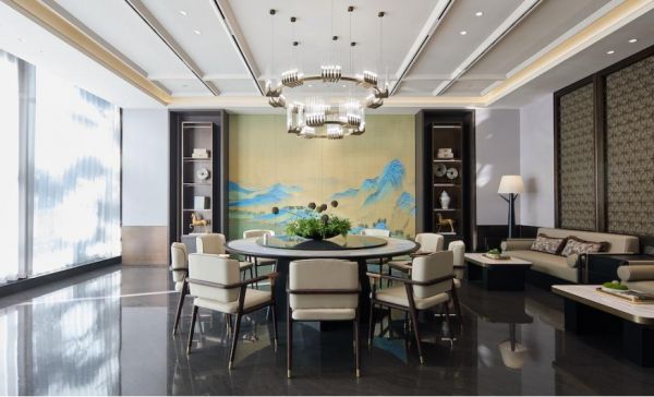 景观会客区与业主餐厅,则把空间气质进一步转化为可被感知的交流体验。景观会客区通过三面落地窗引入松影与山景,使自然资源真正成为空间的一部分,也让会谈与停留拥有更舒展的情绪底色;