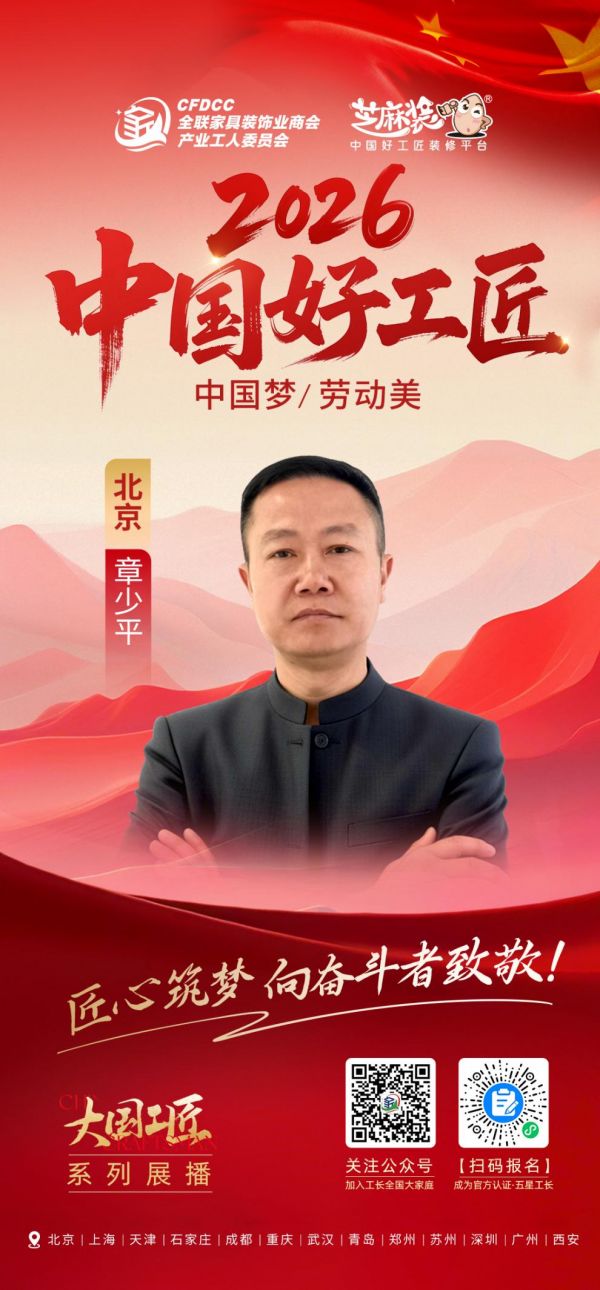 安徽池州东至籍工长章少平,由亲属引荐入行,以木工技艺为根基,在北京家装行业深耕二十余年。他始终怀揣“筑造美好居所”的初心,坚守品质底线、秉持责任担当,用贴心服务适配业主需求,以专业预判规避施工风险,在行业浮躁中坚守匠心本色,生动诠释新时代大国工匠精神的温暖内涵。